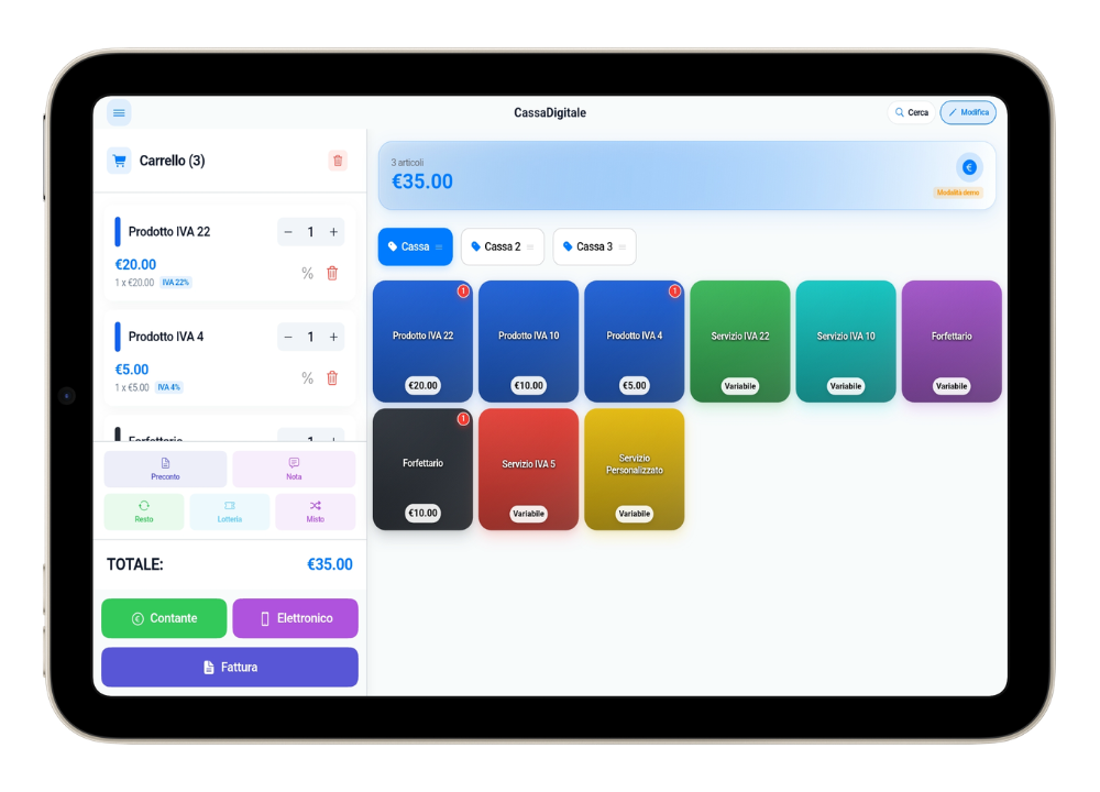 L’App CassaDigitale è la soluzione ideale per negozi, bar, ristoranti, parrucchieri, pizzerie, hotel, fiere, officine, tabaccherie, lavanderie, centri estetici e tutte quelle piccole imprese che vogliono emettere scontrini e fatture elettroniche senza registratore di cassa. Tutto in modo facile, conforme alle normative e senza costi extra per aggiornamenti fiscali.